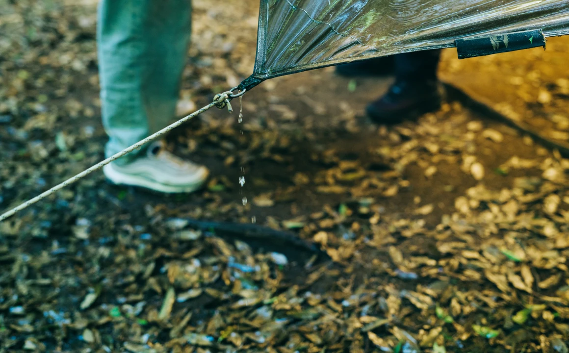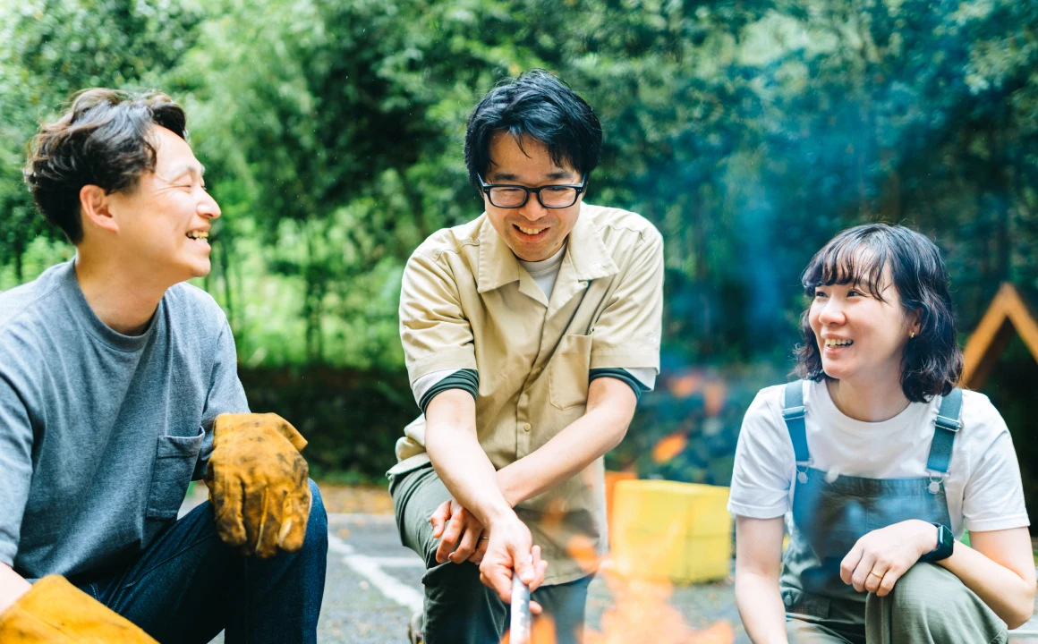 音楽イベントの打ち上げで、業者の方を交えた懇親会をBBQ形式で開催したときのこと。直前に大雨が降ってきてしまいました。そこで、タープやグランドシートなど、大小さまざまなサイズの雨よけを作って懇親会を実施。雨よけの下でみんなが集まることで距離も近づき、気温も寒かったので、焚き火の温かさがほっこりした雰囲気を演出してくれ、雨でも楽しい会となりました。